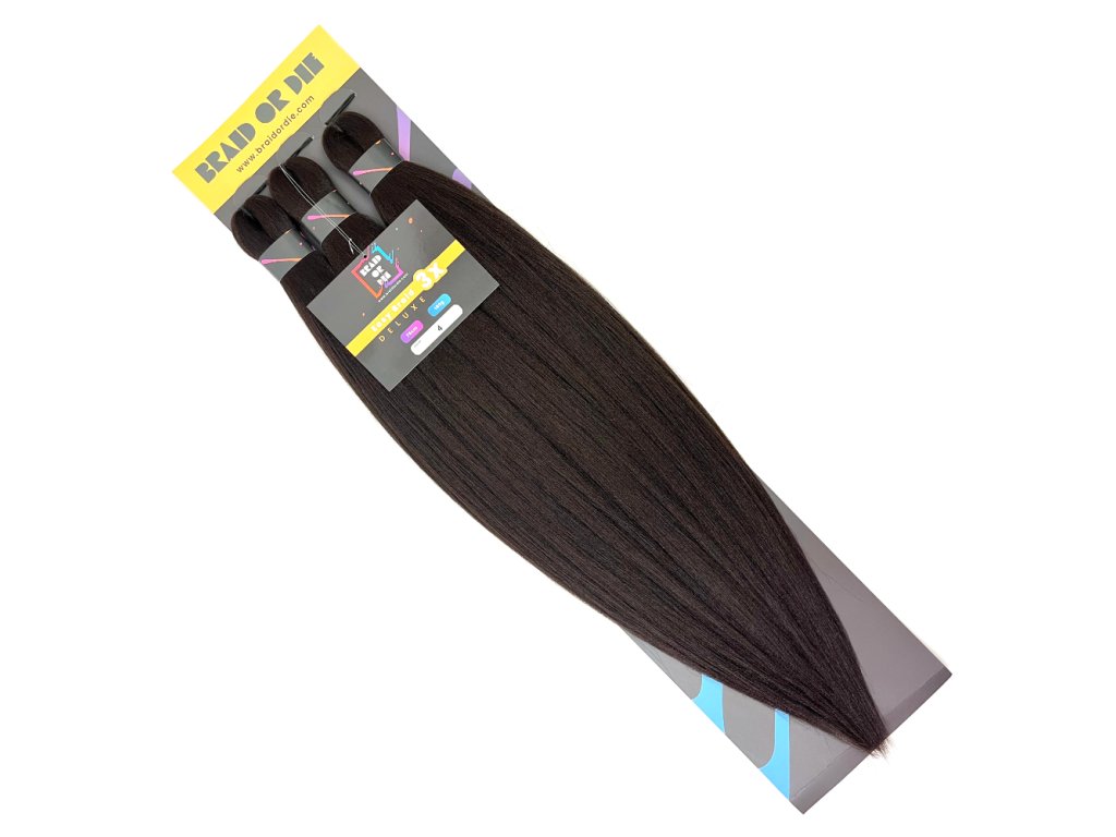 100% EZ 3v1 BraidOrDie Deluxe Kanekalon je exkluzívny typ materiálu určený na rasta copíky, pripletané copíky a twisty a na tvorbu extravagantných účesov aj príčeskov. Jedná sa o vylepšený rad BraidOrDie 3v1 Kanekalonu. Svojou kvalitou sa podobá a dosahuje rovnaké výsledky ako napr. 100% EZ RastAfri Kanekalon.