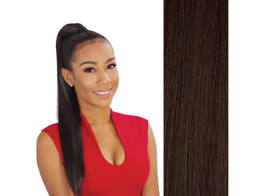 Přípínací culík z umělých vlasů dlouhý 60cm 120gr. Uchycení pomocí sponky a zakrytí spoje pomocí pramenu na suchý zip.