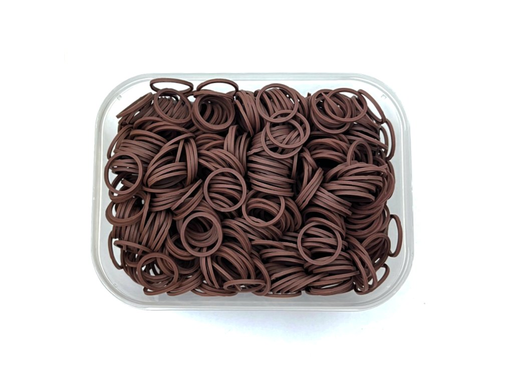 Gumičky na pseudodredy, ukončenie vrkočov alebo fixáciu pri vytváraní rôznych účesov. Jedno balenie obsahuje 1000 kusov gumičiek. Farba tmavohnedá.
