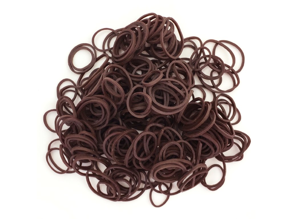 Gumičky na pseudodredy, ukončenie vrkočov alebo fixáciu pri vytváraní rôznych účesov. Jedno balenie obsahuje 250 gumičiek. Farba stredne hnedá.