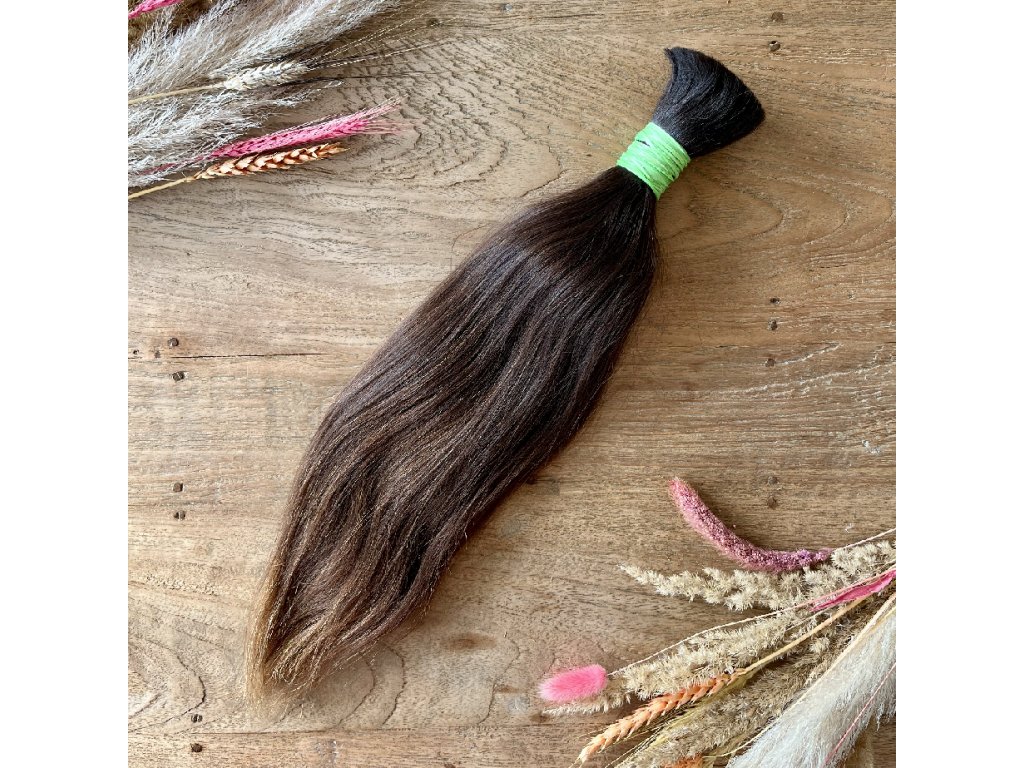 Jemný výber pravých vlasov na predlžovanie je vysoko kvalitný a v porovnaní s ázijskými vlasmi alebo vlasmi európskeho typu má dlhú životnosť. Pri každom vrkoči je uvedená priemerná dĺžka. Táto dĺžka nie je maximálna dĺžka vrkoča, ale dĺžka, ktorú dosahuje väčšina vlasov. Vlasy sú profesionálne odfarbené.